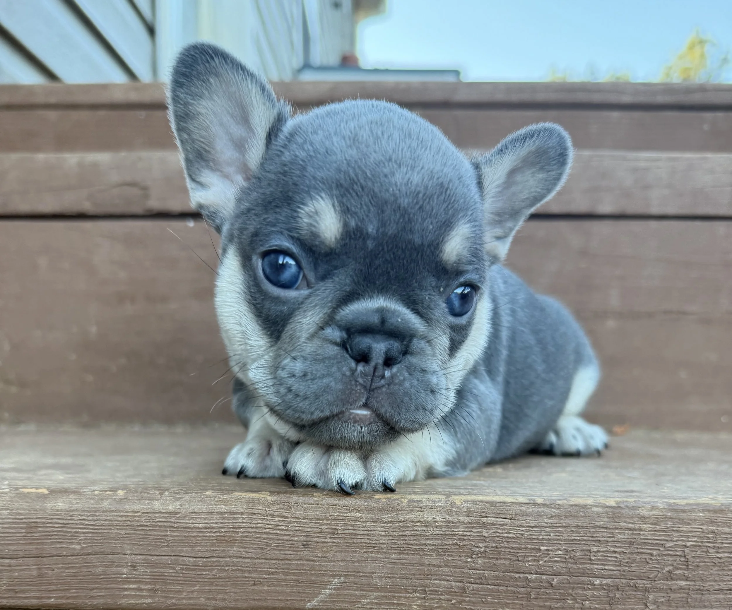 Ella and Man Man have also had a gorgeous litter of 8 teeny tan pointed frenchie babies on October 1st. These babies will also be ready for their new homes the weekend after Thanksgiving.
